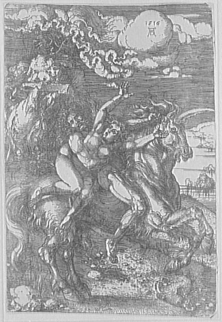 It depicts the abduction of proserpina, who is seized and taken to the underworld by the god pluto.